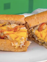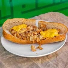 Mecca's Urban Halal offers two fish sandwiches: a Fish Sandwich featuring a fried whiting fillet with mayonnaise, lettuce, tomatoes, and onions on bread, and a Fish Special with chopped grilled fish, fried onions, cheese, and special sauce on a whole-wheat roll or in a wrap.